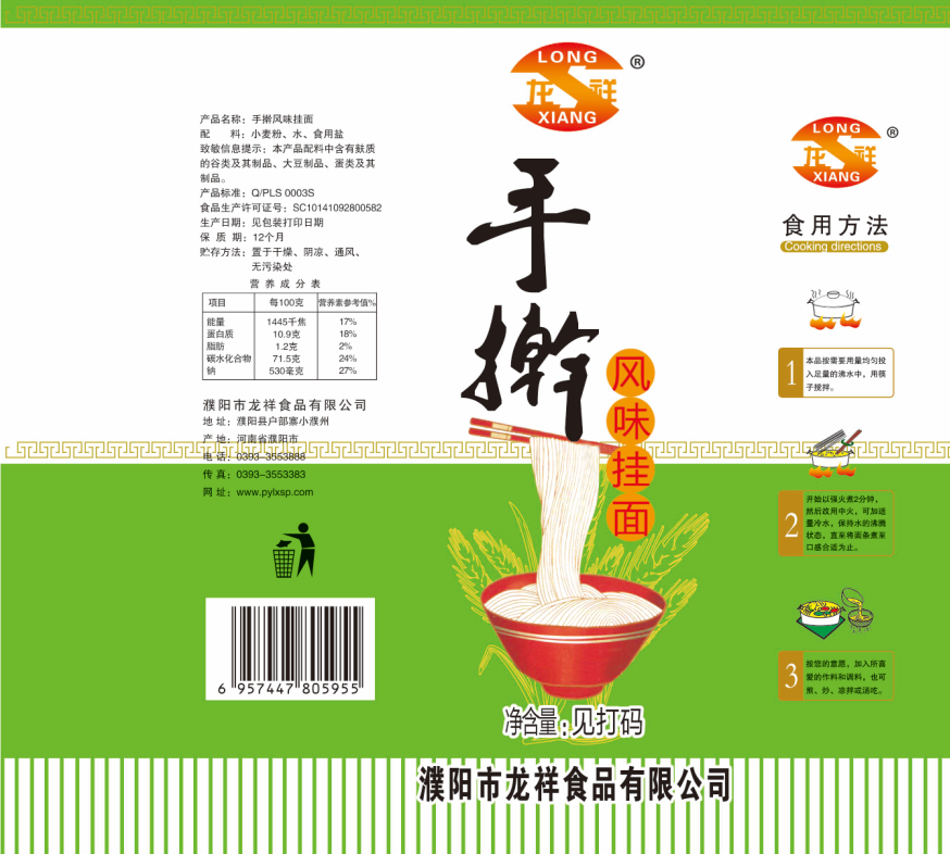 濮陽(yáng)市龍祥食品有限公司位于河南省濮陽(yáng)縣戶部寨鎮(zhèn)小濮州,始建于1994年,前期投資200萬(wàn)元,經(jīng)過幾年的努力,大力開發(fā)市場(chǎng),由于市場(chǎng)的需求量急劇上升,出現(xiàn)供不應(yīng)求,于2004年擴(kuò)建,建成一座新型的現(xiàn)代化面粉加工企業(yè),并擁有全國(guó)先進(jìn)全自動(dòng)生產(chǎn)設(shè)備一套,產(chǎn)量由以前的100噸/天,提高到現(xiàn)在400噸/天。 2012年再次擴(kuò)大規(guī)模申請(qǐng)為濮陽(yáng)市龍祥食品有限公司,注冊(cè)資金500萬(wàn)元。2012年又投資800萬(wàn)元新建掛面生產(chǎn)線一條,日產(chǎn)掛面50噸。龍祥食品有限公司現(xiàn)有職工120余人,總工程師1人,專業(yè)技術(shù)人員10人,經(jīng)濟(jì)師1人,會(huì)計(jì)師1人,銷售人員2人,優(yōu)秀專業(yè)人員20余人。  龍祥公司自創(chuàng)建以來(lái),社會(huì)效益十分可觀。公司一直以“今天的質(zhì)量,明天的市場(chǎng)”為信念,“一切為了客戶需求,竭誠(chéng)追求完美品質(zhì)”為企業(yè)宗旨,走專業(yè)化經(jīng)營(yíng)和職業(yè)化管理的路子。